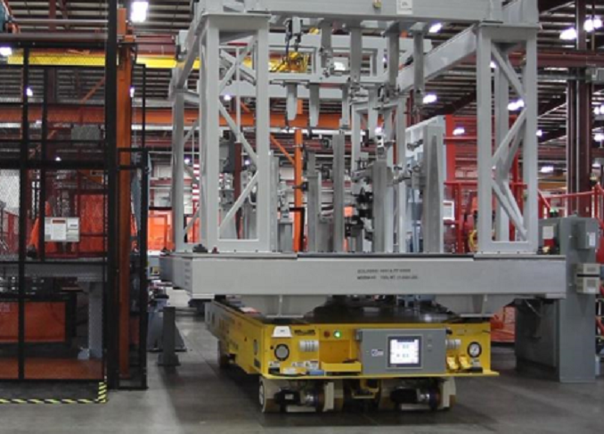 大噸位背負式AGV,適用于搬運大型構件或重型產(chǎn)品設備等,物料可以直接在AGV上進行搬運。