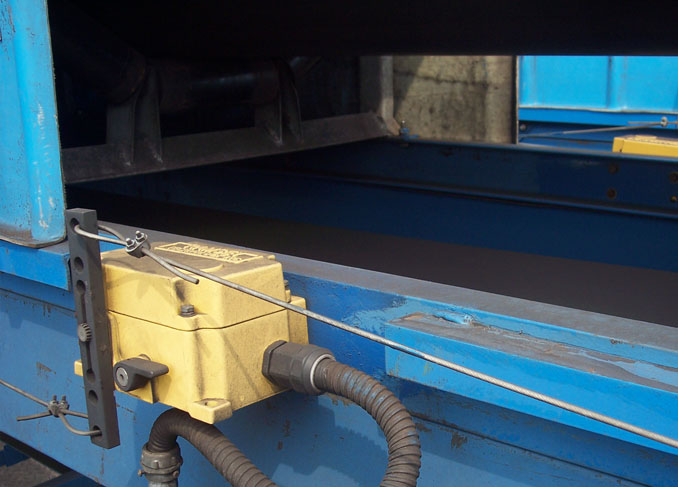 拉線開(kāi)關(guān)通常安裝在輸送機(jī)的兩側(cè),用于設(shè)備的緊急停機(jī),以保護(hù)人員或設(shè)備的安全。拉線開(kāi)關(guān)的鋼絲繩一端固定在一個(gè)固定的拉線螺栓上,另一端固定在開(kāi)關(guān)臂上,鋼絲繩每三米用一個(gè)有孔螺栓支撐,開(kāi)關(guān)到固定點(diǎn)的距離不應(yīng)超過(guò)24米,兩開(kāi)關(guān)間的距離不應(yīng)超過(guò)48米。當(dāng)外力促使開(kāi)關(guān)臂桿轉(zhuǎn)動(dòng)到報(bào)警位置時(shí),觸動(dòng)微動(dòng)開(kāi)關(guān)并鎖定,直到人工復(fù)位。標(biāo)準(zhǔn)拉線開(kāi)關(guān)防護(hù)等級(jí)為IP65,適應(yīng)于室內(nèi)外安裝。表面經(jīng)特殊處理后可用于酸、堿、鹽性區(qū)域。鍍鎳表面用于強(qiáng)腐蝕區(qū)域。